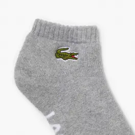Un marquage Lacoste oversize contrasté signe cette paire de chaussettes basses unies. Confectionnées en jersey de coton stretch, doux et résistant, elles présentent des chevilles côtelées et un petit crocodile vert brodé.- Maintien bord-côte chevilles