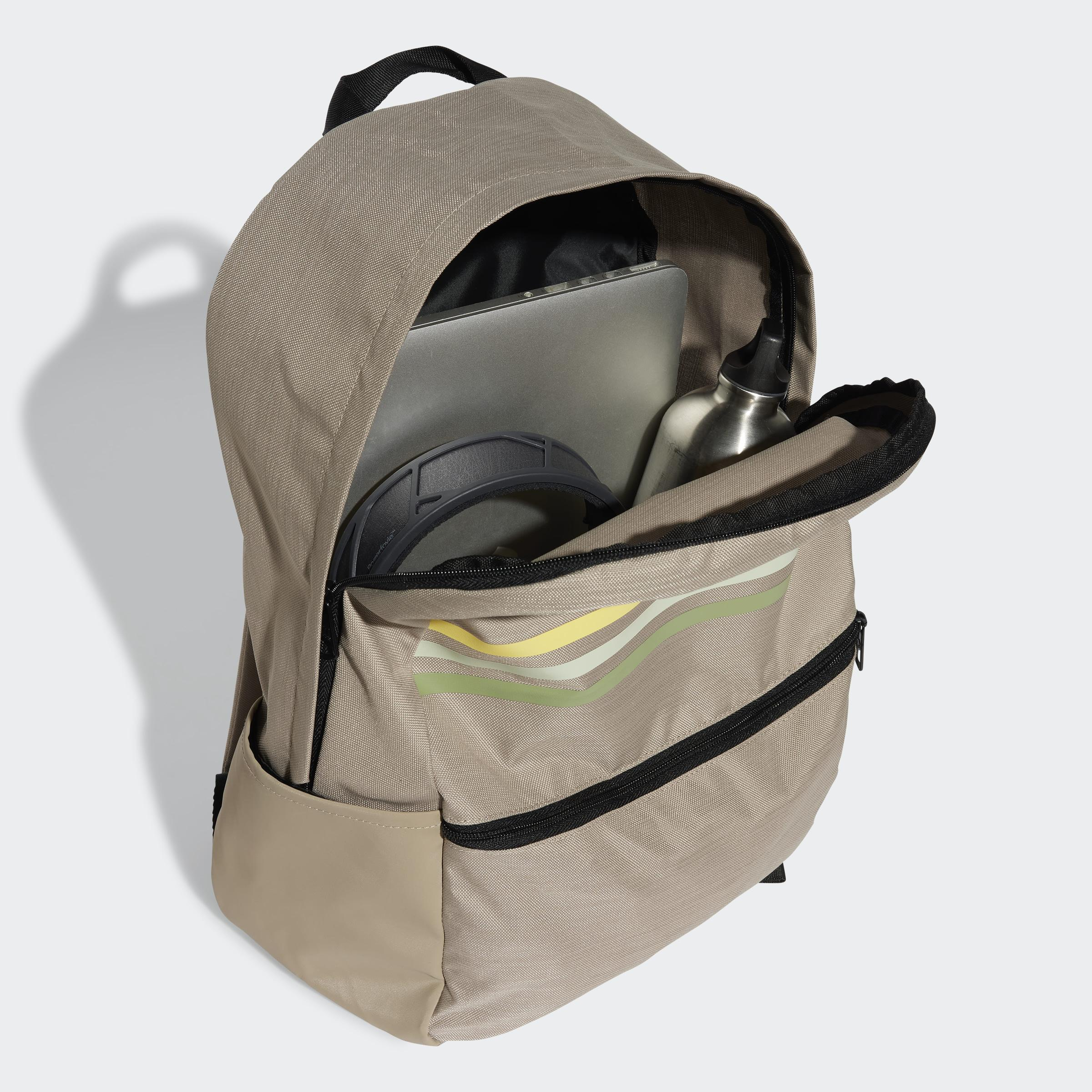 Ce sac à dos adidas ne passera pas inaperçu avec ses 3 bandes classiques aux couleurs dégradées. Organise tes affaires avec toutes les poches dont tu as besoin, dont une à l'avant et une de chaque côté. La base enduite résiste à un usage quotidien et les bretelles ajustables font du confort une priorité. La trousse assortie est munie de zips pour accéder facilement à des ustensiles ou autres petits objets.Conçu à partir de matières recyclées, et contenant 40 % minimum de matériaux recyclés, ce produit ne constitue qu'une de nos solutions pour lutter contre les déchets plastiques.